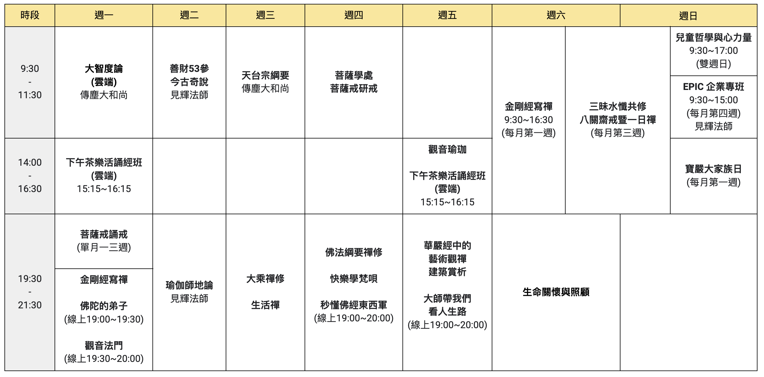 座落於高雄市美術館特區,本院享有著塵囂當中的一絲祥和與寧靜的氣氛,使得踏入禪院的學子們得到身與心淨化般的清涼。