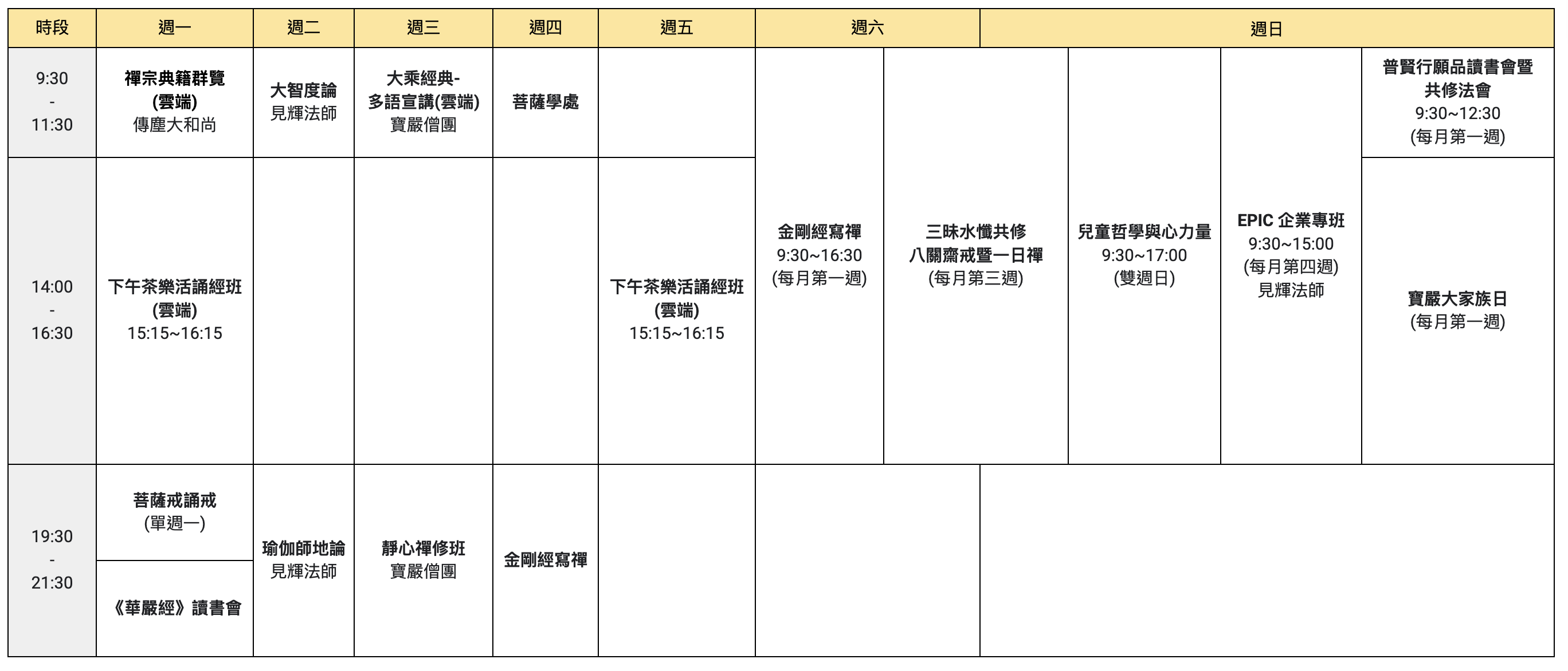 高雄圓道禪院 2026 課程表